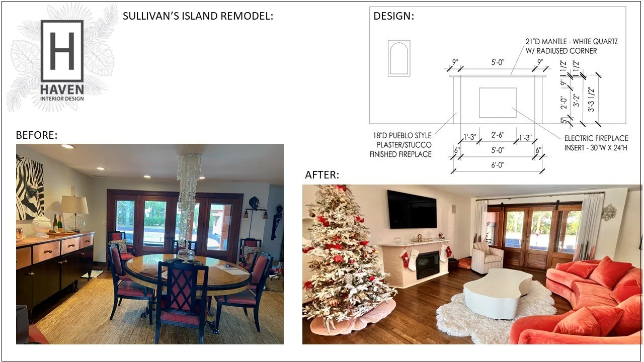 For this post, we’re focusing on fireplaces! In these, we created original shapes, textures, finishes, and detailing to complement and enhance the surrounding spaces. We also factored in our clients’ needs and wants for how it can function best for them. Here are a few before, during, and after projects featuring Haven Custom fireplaces.